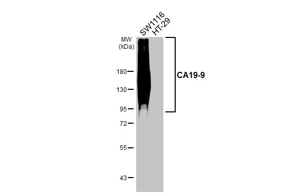 Carbohydrate antigen 19-9 (CA 19-9), also known as sialyl-LewisA, is a tetrasaccharide with the sequence Neu5Acα2-3Galβ1-3[Fucα1-4]GlcNAcβ. It is used clinically to assist in the diagnosis of pancreatic cancer, but is more widely utilized to monitor therapy and detect recurrences in diagnosed cases. CA 19-9 is also elevated in many other diseases, including cholangiocarcinoma, colorectal cancer, hepatocellular carcinoma, and cirrhosis. GeneTex’s CA 19-9 mouse monoclonal antibody [GT933] demonstrates superior sensitivity for western blot, immunohistochemistry, and immunocytochemistry in comparative testing against other well-known CA 19-9 antibodies. Most significantly, glycan array interrogation using this antibody establishes that it is specific for sialyl-LewisA.