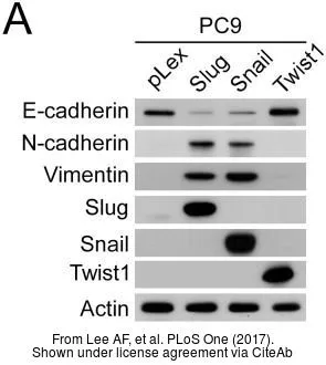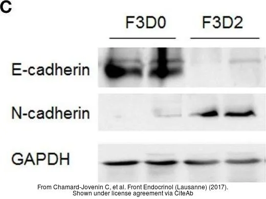 Various whole cell extracts (30 μg) were separated by 5% SDS-PAGE, and the membranes were blotted with E-Cadherin antibody (GTX100443) diluted at 1:3000 and competitor's antibody diluted at 1:3000. The HRP-conjugated anti-rabbit IgG antibody (GTX213110-01) was used to detect the primary antibody.
