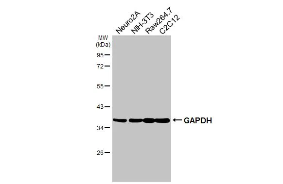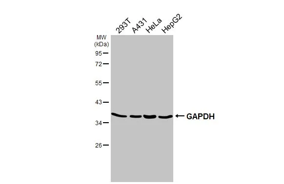 GAPDH antibody [GT239] detects GAPDH protein by western blot analysis.