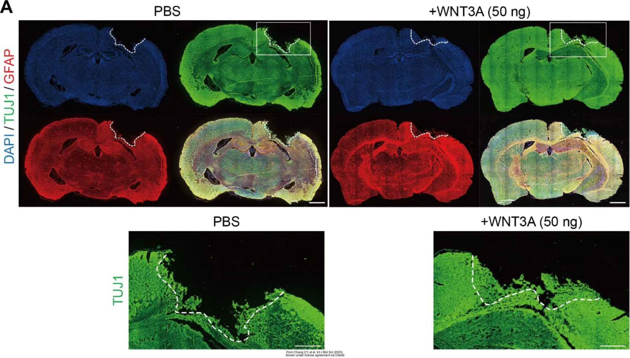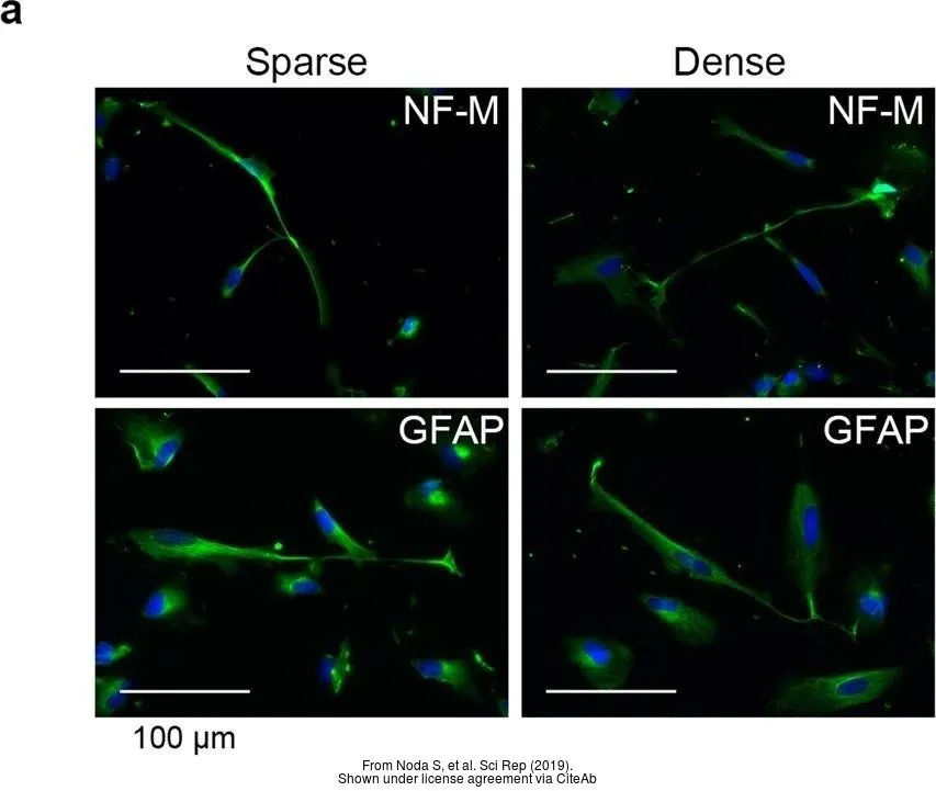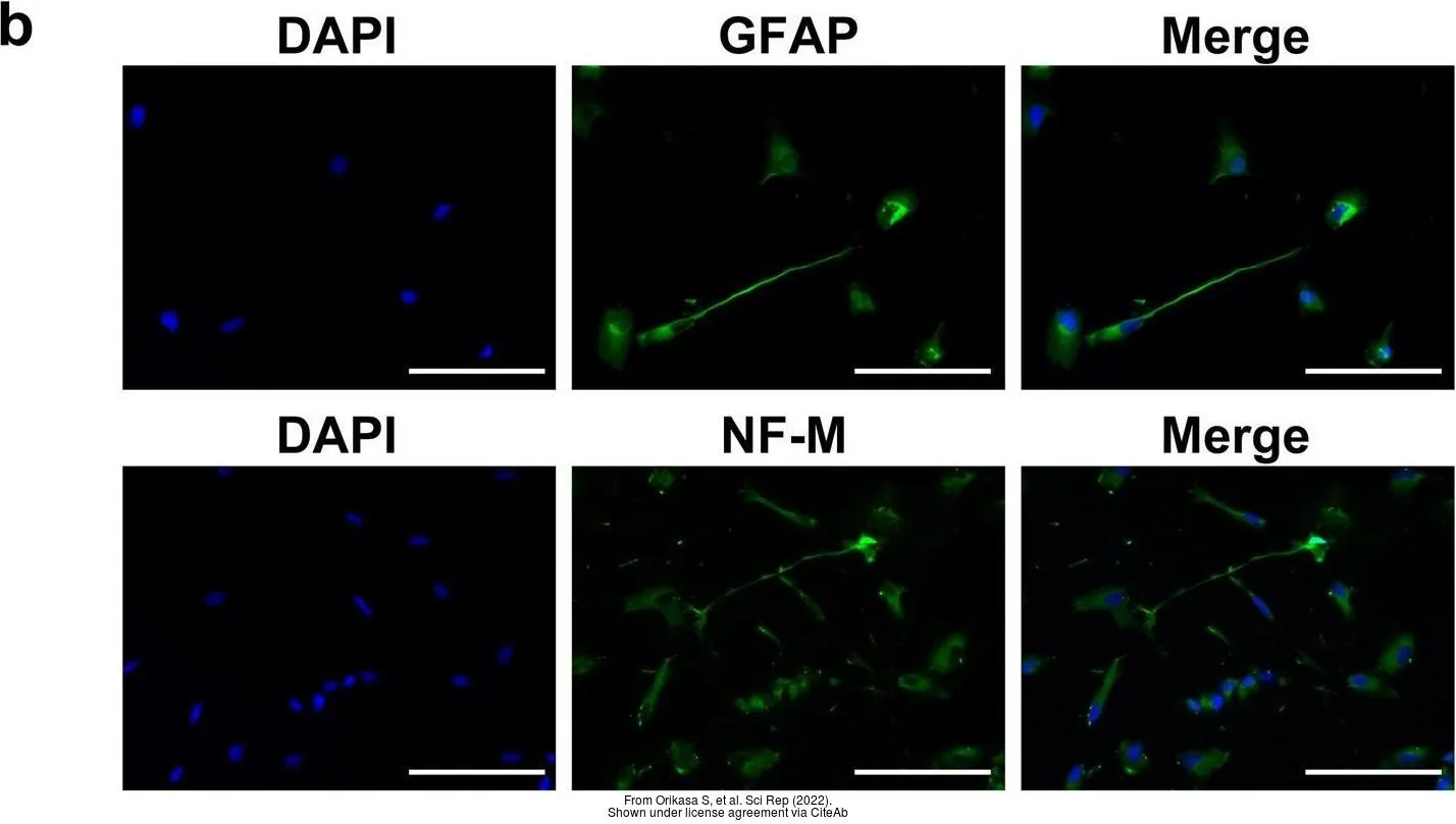Green: GFAP protein stained by GFAP antibody (GTX108711) diluted at 1:250.