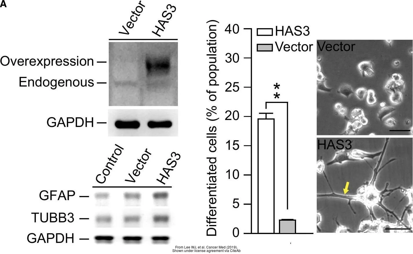 Non-transfected (–) and transfected (+) 293T whole cell extracts (30 μg) were separated by 10% SDS-PAGE, and the membrane was blotted with GFAP antibody (GTX108711) diluted at 1:20000. The HRP-conjugated anti-rabbit IgG antibody (GTX213110-01) was used to detect the primary antibody.