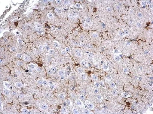 Iba1 antibody detects Iba1 protein expression at microglias by immunohistochemical analysis.