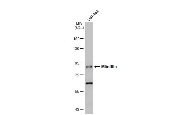 Anti-Mitofilin antibody used in Western Blot (WB). GTX115523