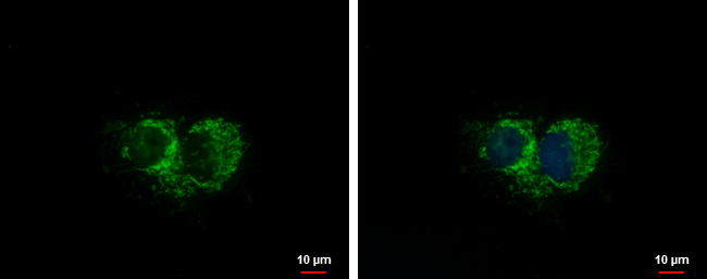 Green: Mitofilin protein stained by Mitofilin antibody (GTX115523) diluted at 1:500.