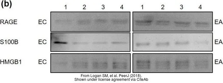 S100B, a member of the S100 family of calcium-binding cytosolic proteins with a predicted molecular weight of 11kDa, is an independent prognostic marker for melanoma. Elevated S100B and lactate dehydrogenase (LDH) levels are clinically useful for the detection of tumor progression and metastasis.