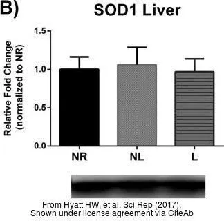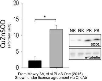 Green: SOD1 antibody (GTX100554) diluted at 1:200. The signal was developed using goat anti-rabbit IgG antibody (Dylight488) (GTX213110-04).