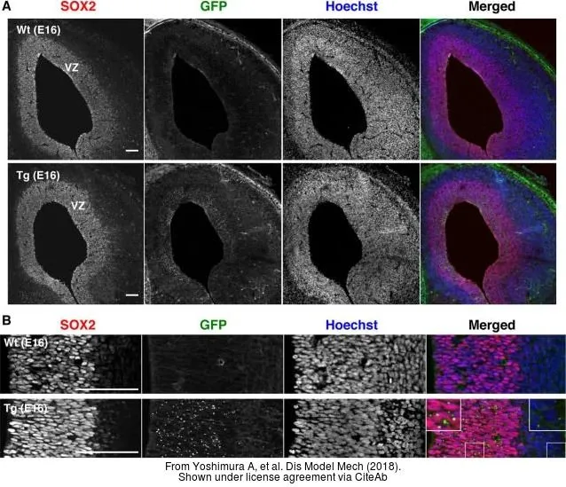 Green: SOX2 antibody [N1C3] (GTX101507) diluted at 1:200. The signal was developed using goat anti-rabbit IgG antibody (Dylight488) (GTX213110-04).