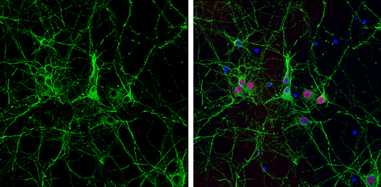 Red: NeuN, stained by NeuN antibody (GTX132974) diluted at 1:250.