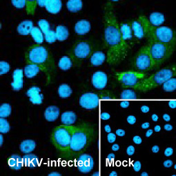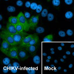 GeneTex continues its commitment to producing quality reagents for infectious disease research with an expanding portfolio of reagents for arbovirus research (including antibodies against Zika virus, Dengue virus, Japanese encephalitis virus, and Venezuelan equine encephalitis virus, among many others). For CHIKV research, GeneTex is proud to introduce new recombinant antibody products (e.g., Chikungunya virus E1 antibody [HL2069] (GTX637973) and Chikungunya virus nsP2 antibody [HL1488] (GTX636962)) to expand its already near-comprehensive line of CHIKV protein antibodies. Please see the highlighted product images and a complete CHIKV antibody listing below.