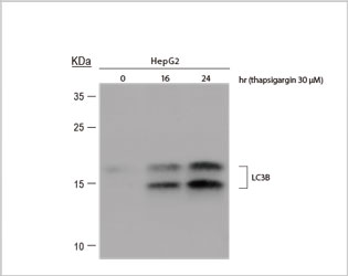Detecting predicted changes in the antibody-generated signal due to alteration of experimental biological conditions is a reliable approach to gauge antibody performance. This is based on enrichment, depletion, or subcellular localization of the target protein that results from specific, well-described sample preparation methods commonly used to study protein biology. These methods include the following: 1.Treatment of cells with chemical agents, cytokines, hormones, hypoxic or nutrient-deprived culture conditions, etc. In the example below, LC3B protein expression and subcellular localization were detected by western blot and immunocytochemistry with GeneTex’s LC3B antibody (GTX127375) in HepG2 and HeLa cells treated with Thapsigargin and Chloroquine, respectively. The LC3B signal was found to be both increased and enriched in autophagosomes in the treated cells, corresponding to the protein’s known biological behavior. |